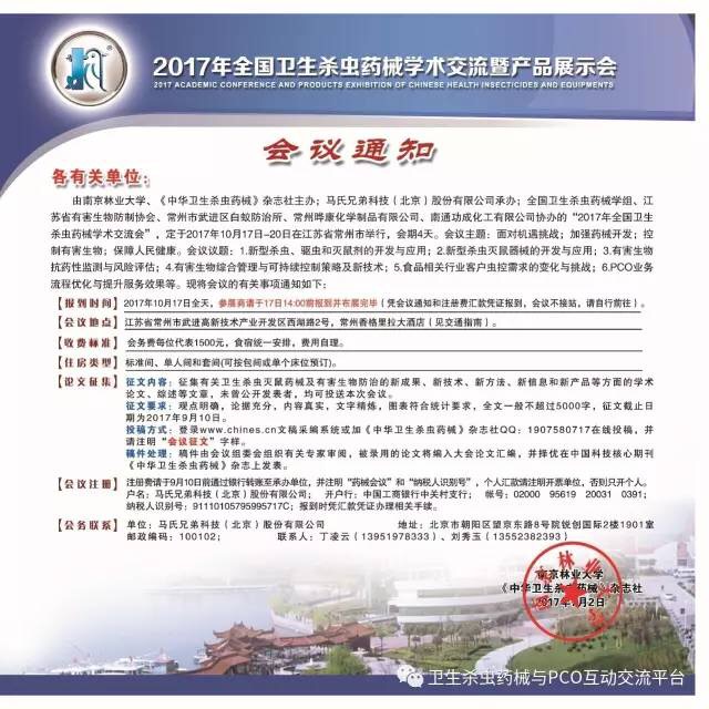 2017全國衛生殺蟲藥械學術交流暨產品展示會